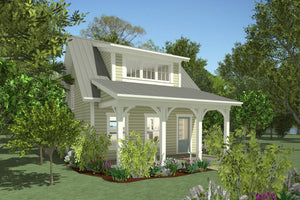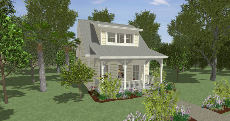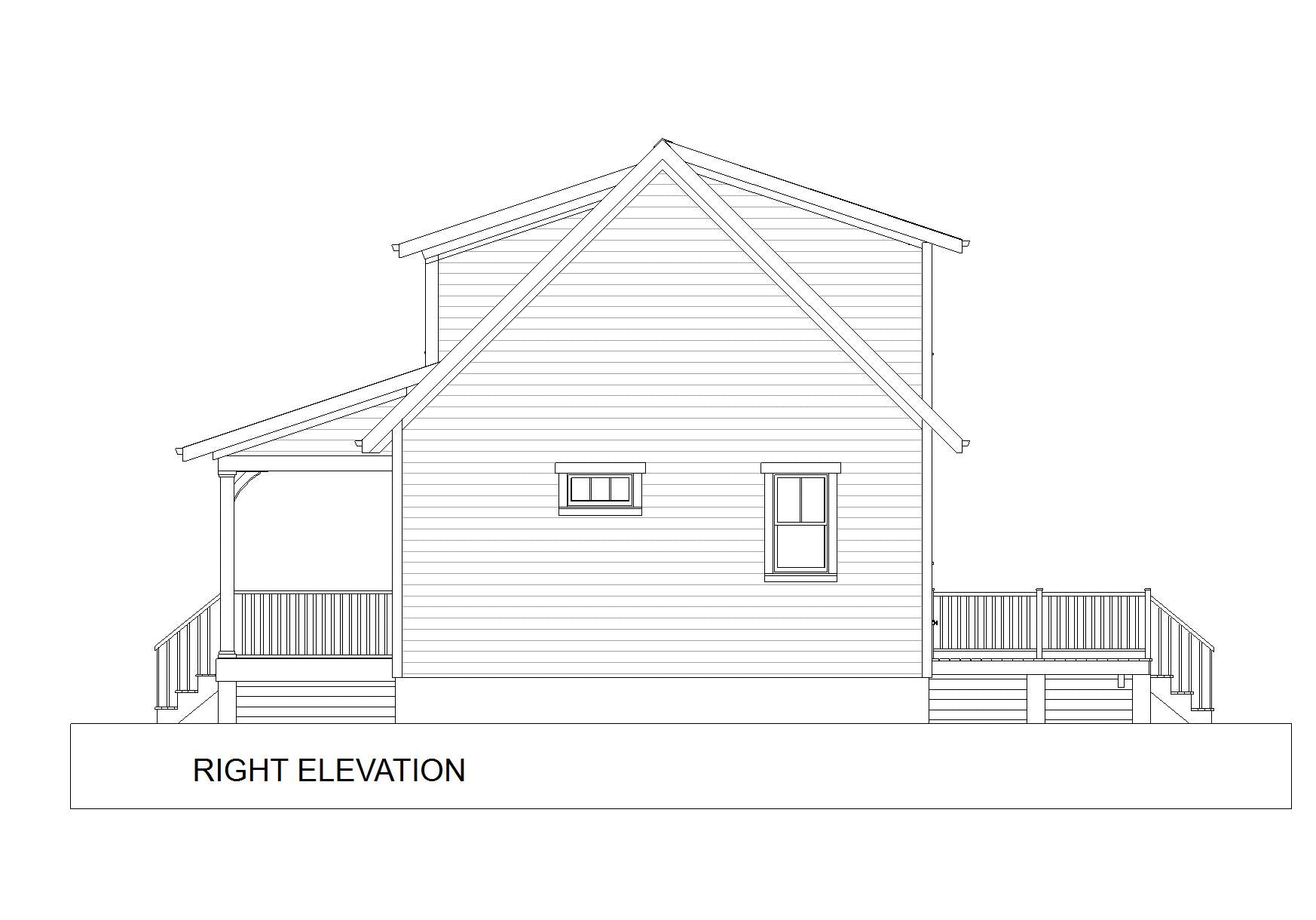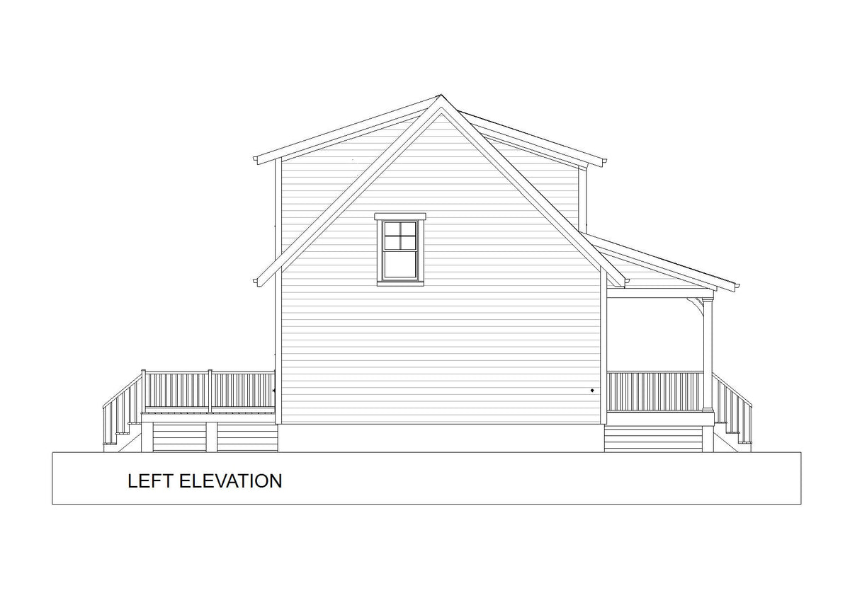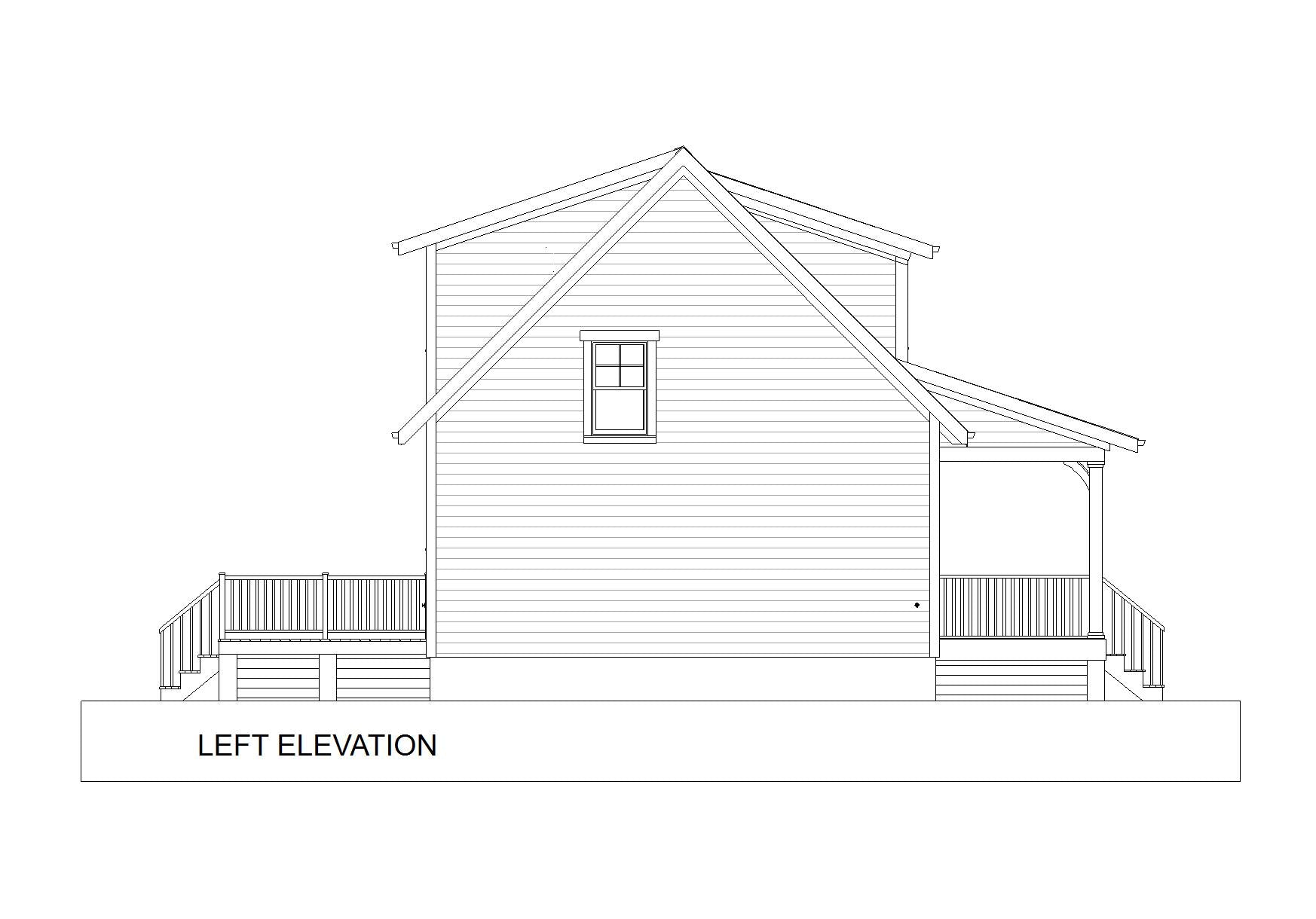 This charming 840 sq ft tiny home offers a perfect blend of compact design and comfortable living. The first floor features a great room, kitchen with an island, and a walk-in pantry, ideal for small-space living. The covered front porch and deck provide a welcoming outdoor space for relaxation.