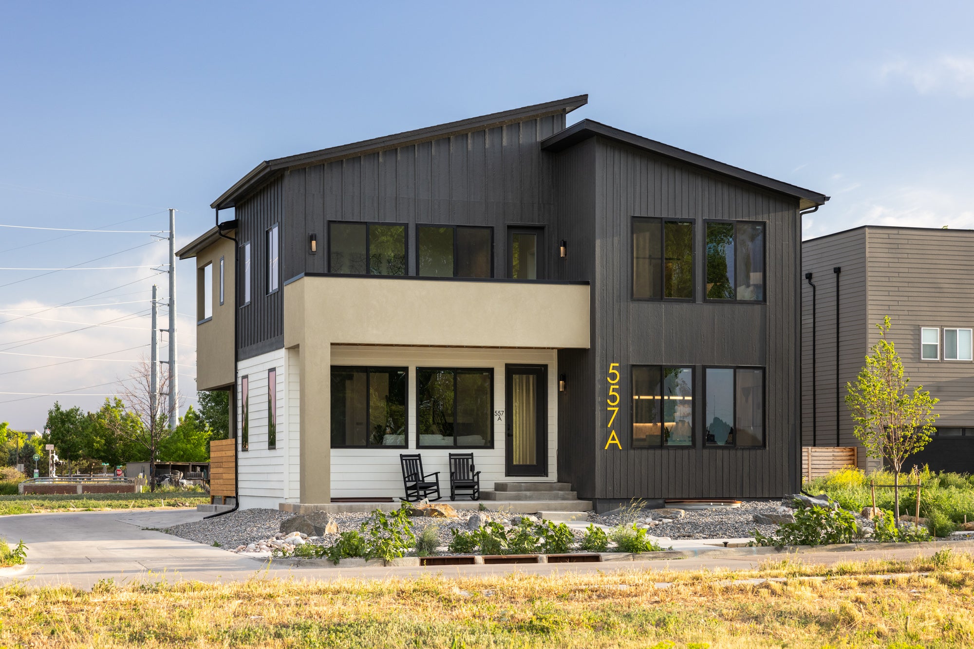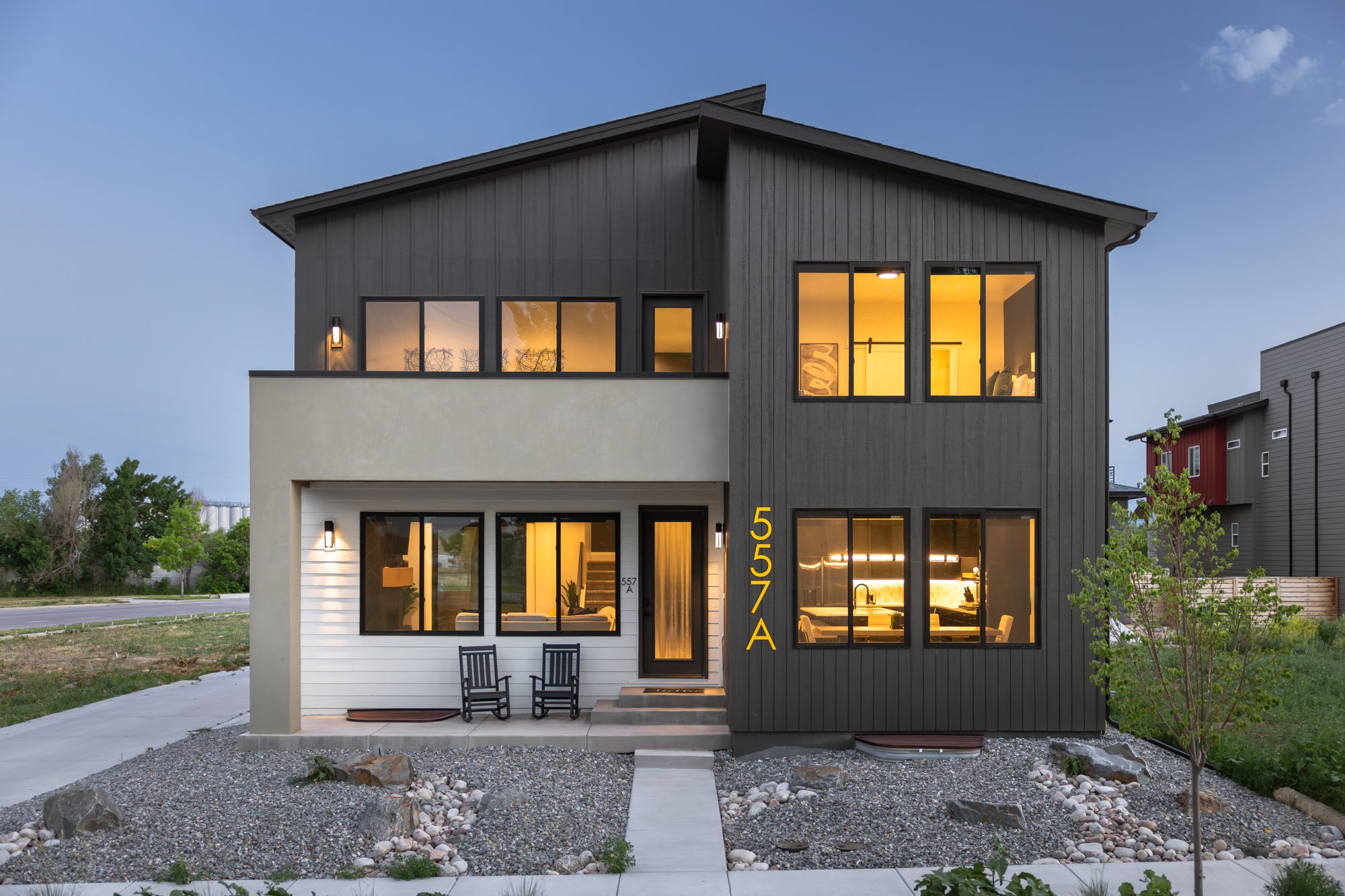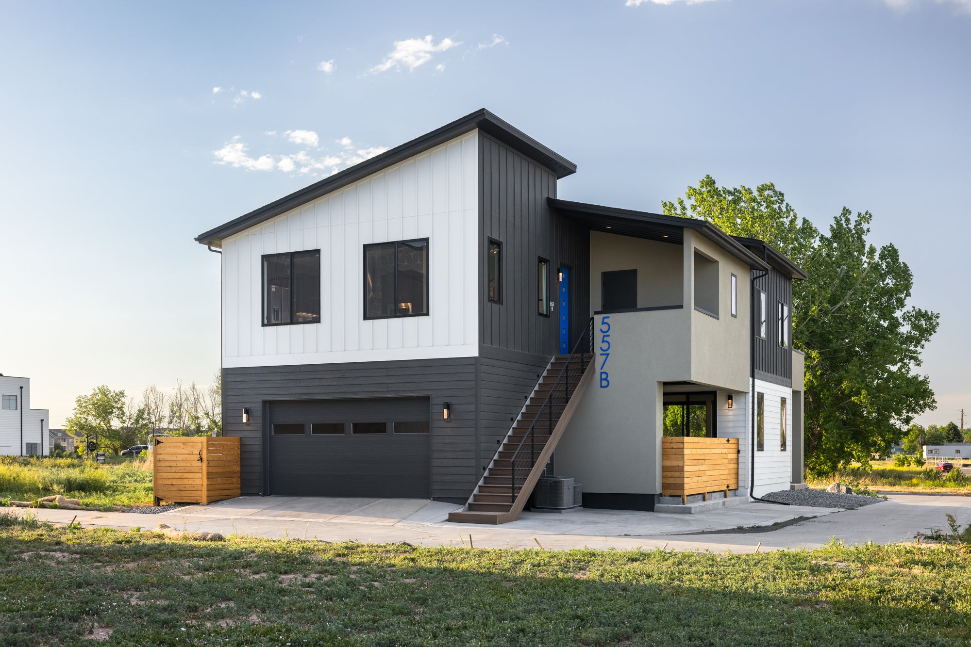 Other highlights include a front-load 2-car garage attached to the second unit, a first-floor laundry, and expansive outdoor living areas with a covered back porch, front porch, and deck.