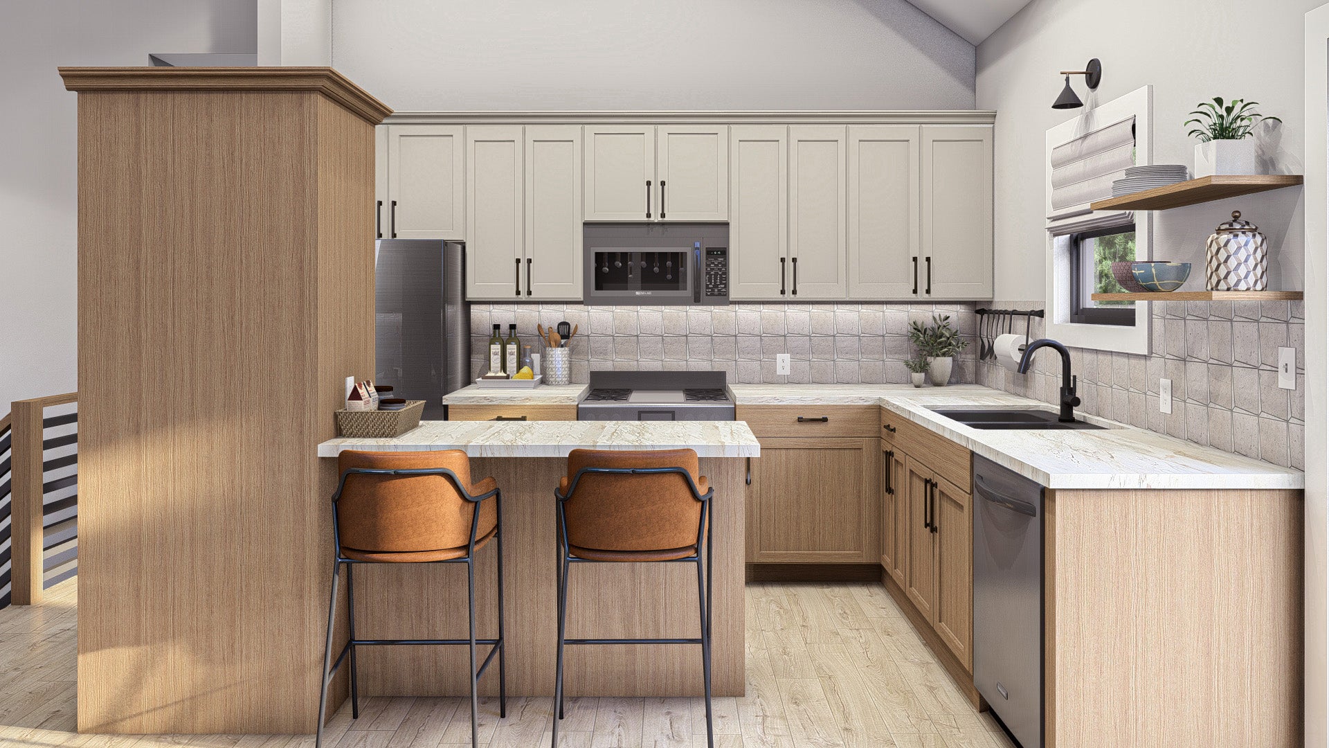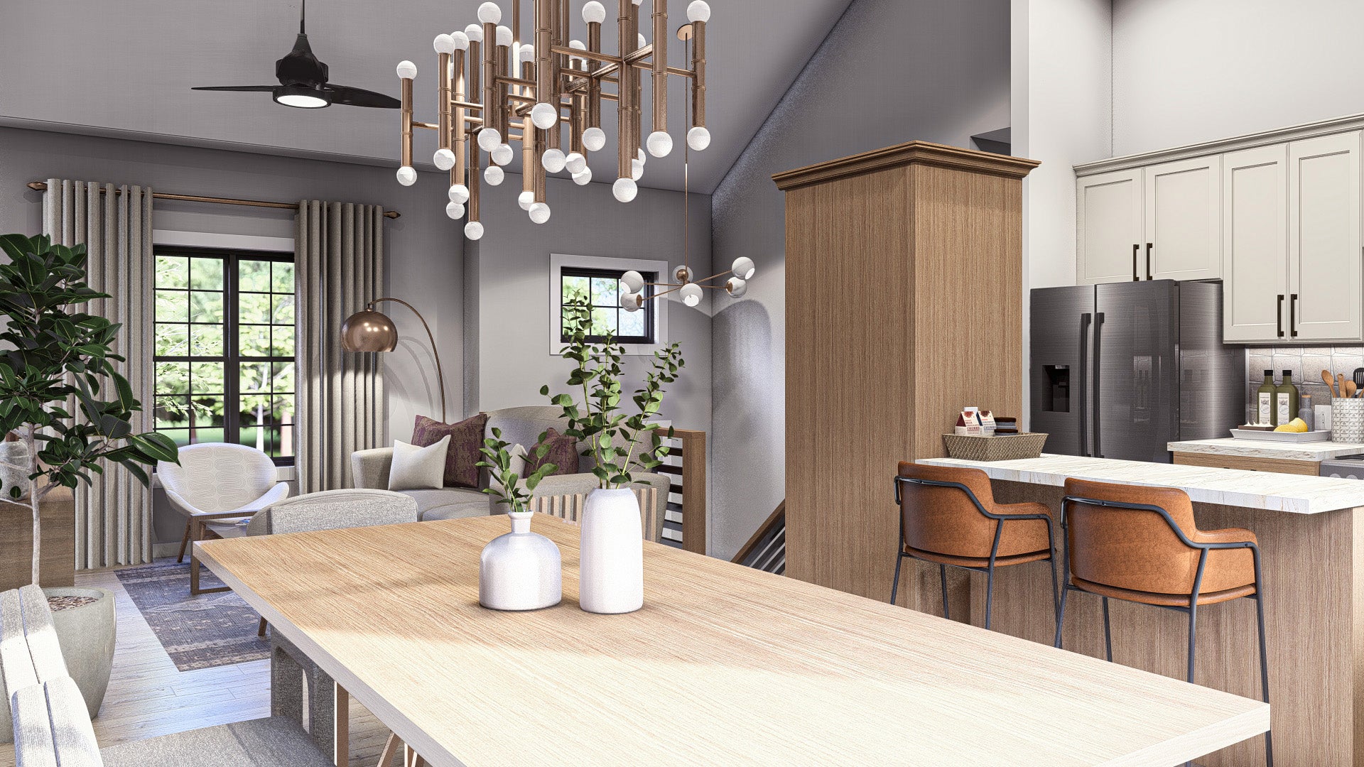 The kitchen is efficiently designed for both everyday use and entertaining. It includes a central kitchen island, an eating bar for casual meals, and a convenient wall pantry for organized storage. Positioned adjacent to the kitchen, the formal dining room provides a dedicated space for family dinners or special occasions while remaining closely connected to the main living area for easy flow.