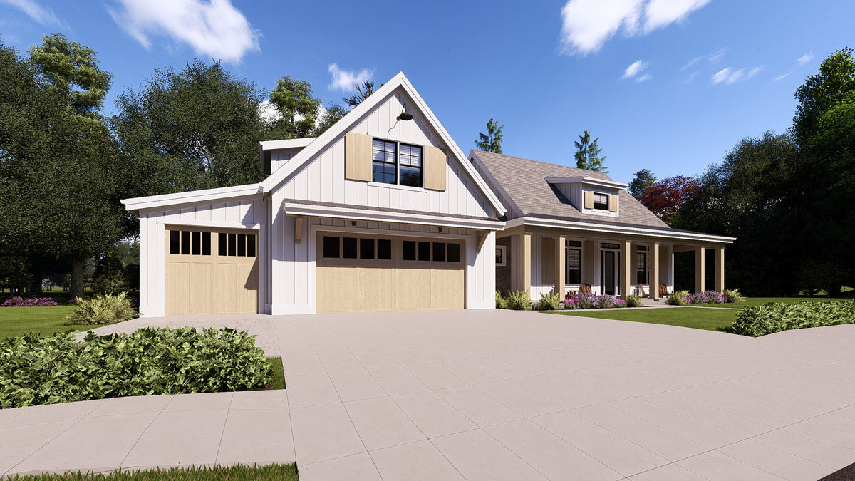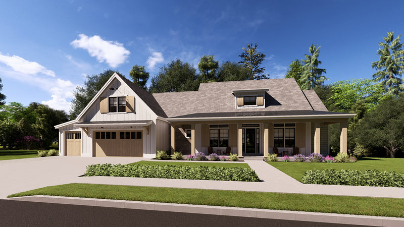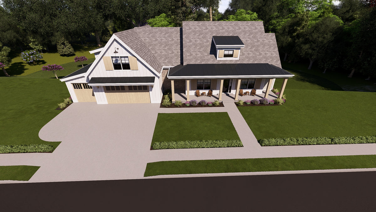 This stunning 2,593 sq ft Modern Farmhouse is a masterclass in relaxed elegance and thoughtful design. With its wraparound front porch, outdoor fireplace, and soaring two-story grand room, it blends welcoming curb appeal with striking architectural drama. Inside, a split-bedroom layout ensures privacy, while the open-concept kitchen and living area offer effortless flow—centered around a large walk-in pantry and mudroom for everyday ease. The luxurious first-floor master suite features direct laundry access and a spa-like bath, while the Jack and Jill bedrooms on the opposite wing are perfect for kids or guests.