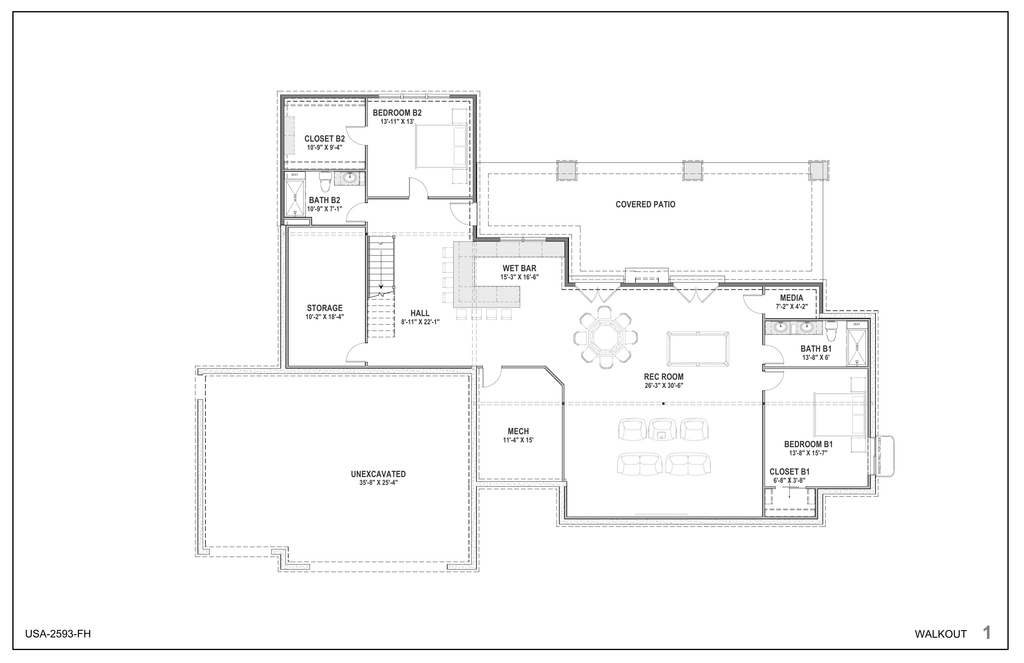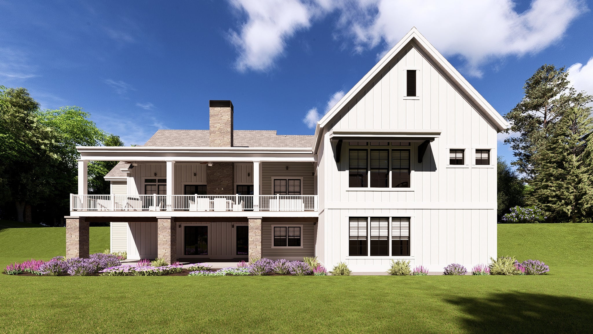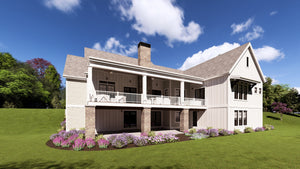 The home also boasts a spacious bonus room above the garage and an impressive 2,444 sq ft walkout basement, complete with a media room, game room, wet bar, and flexible storage or expansion space. Ideal for entertaining, multi-generational living, or just enjoying life indoors and out, this plan also includes a 3-car front-load garage and over 900 sq ft of covered porches. Whether you’re relaxing by the outdoor fireplace or hosting movie night downstairs, this modern farmhouse offers timeless comfort with a contemporary edge.