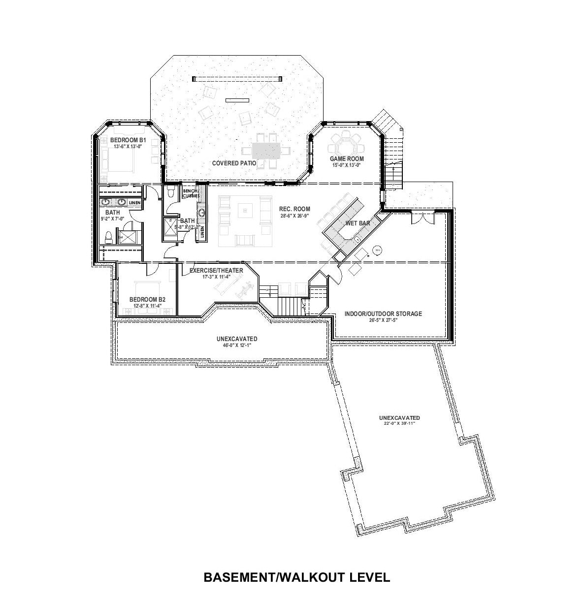 Walkout Basement - This foundation is typically suited for rear-sloping lots and provides storage or living areas. Walkout basements have doors that provide access to the outside.