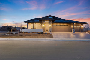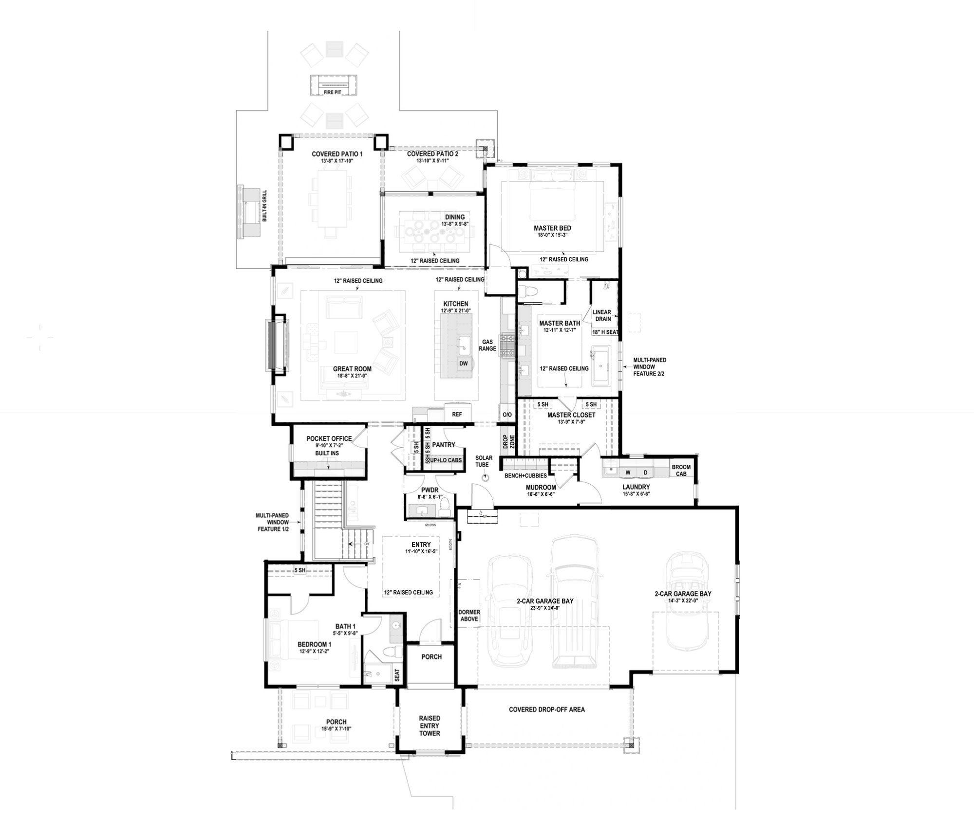 This stunning 2,611 sq. ft. home offers a well-designed single-story layout with four bedrooms, four and a half bathrooms, and an array of luxurious features. The open-concept design centers around a spacious great room with a fireplace, seamlessly connecting to the kitchen with a large island, walk-in pantry, and wet bar. A formal dining room adds elegance, while the first-floor master suite provides a private retreat with a walk-in closet and direct laundry access. Additional main-level highlights include a dedicated home office, mudroom, and ample storage.