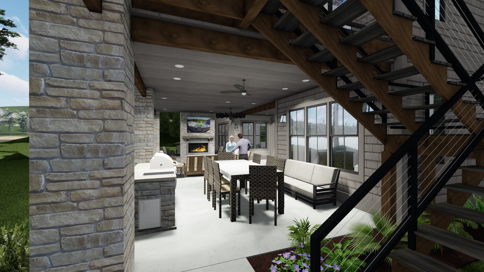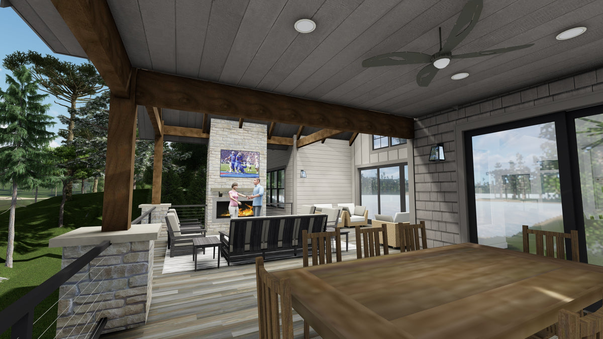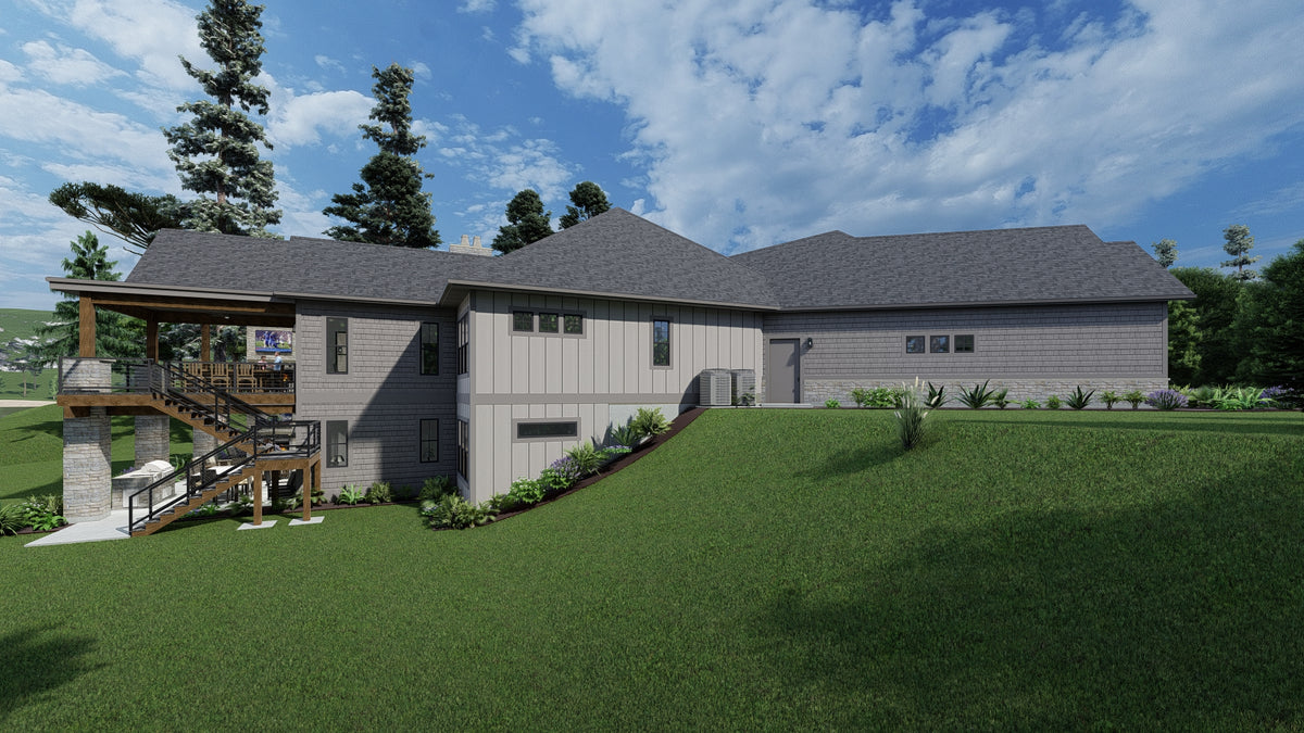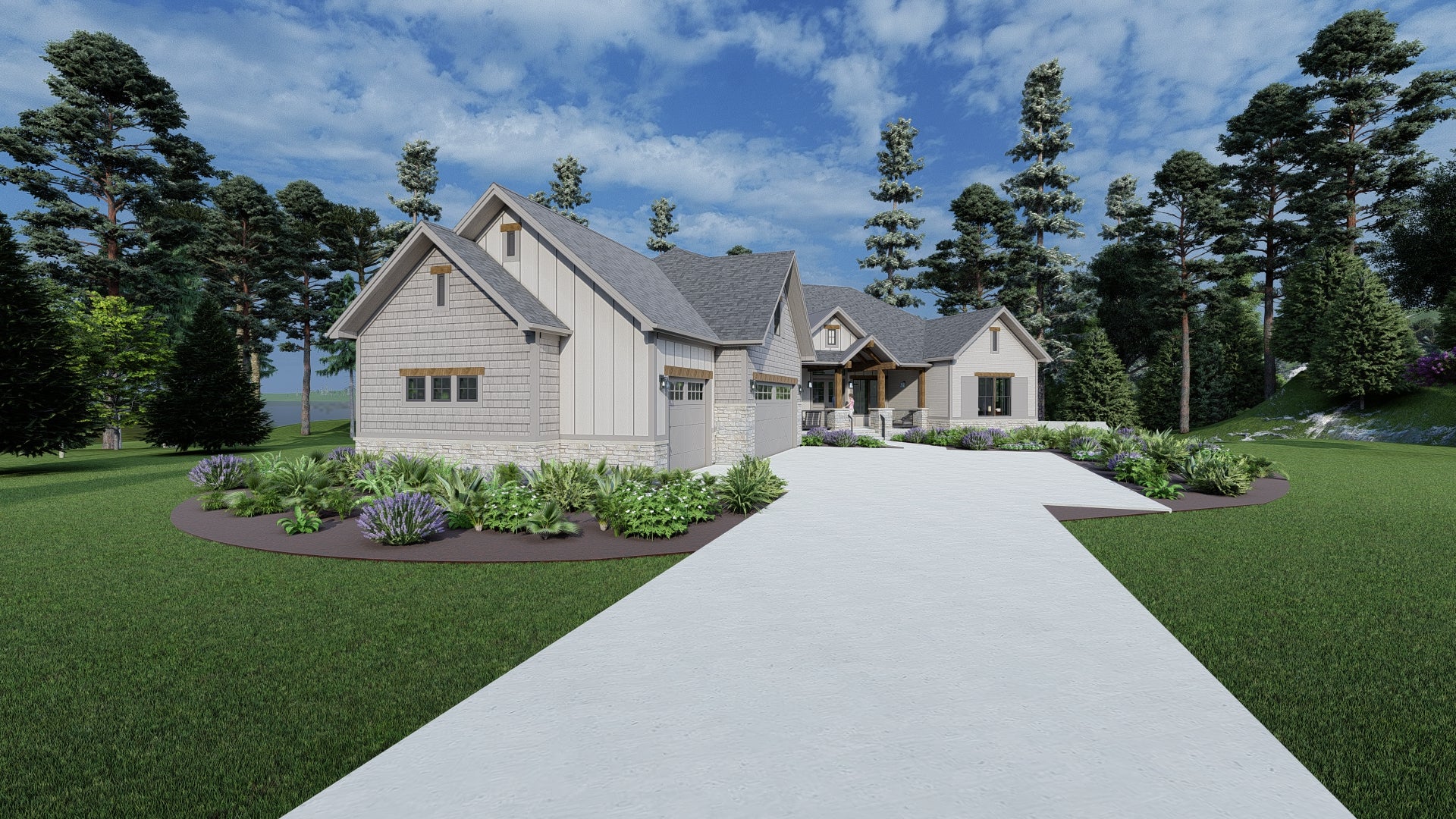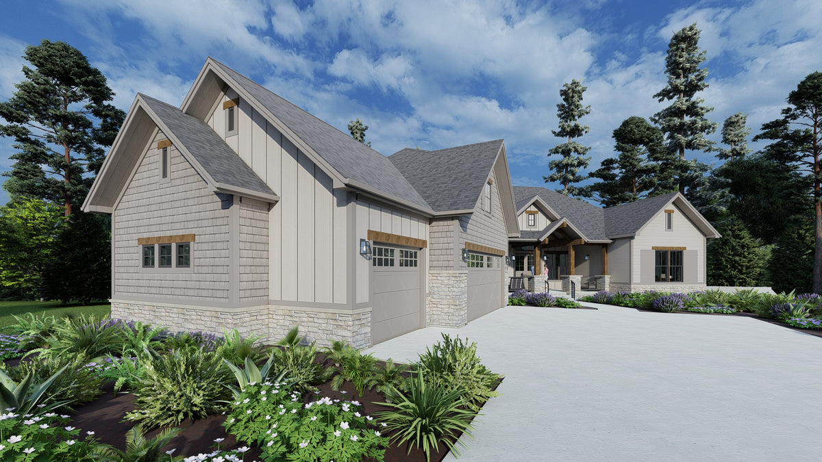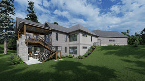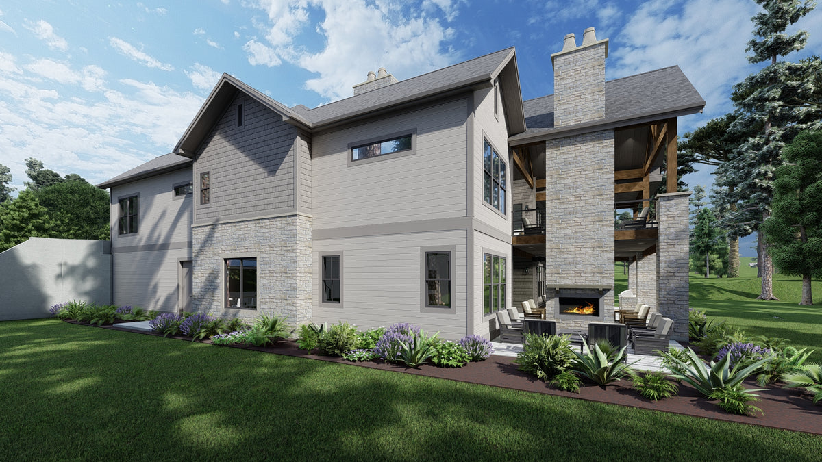 Downstairs, the 1,995 sq ft walkout basement offers endless possibilities with space for a wet bar, recreation area, or future bedrooms. The massive deck (1,112 sq ft) and courtyard-style 3-car garage further elevate this home’s blend of indoor-outdoor living. With elegant rooflines, 10-foot ceilings, and upscale touches throughout, this plan is ideal for those who value stylish living, spacious design, and effortless entertaining in one beautiful, livable package.