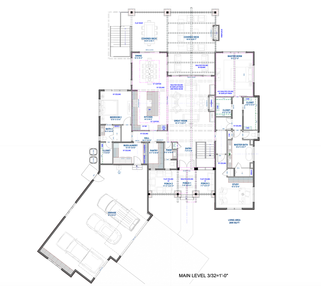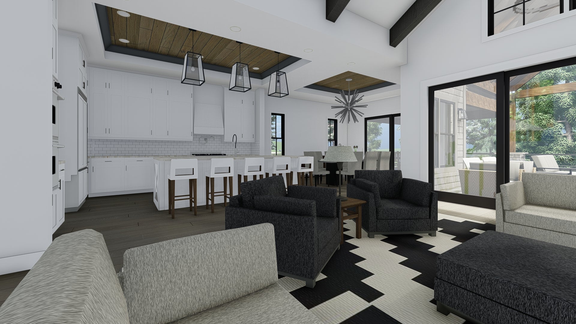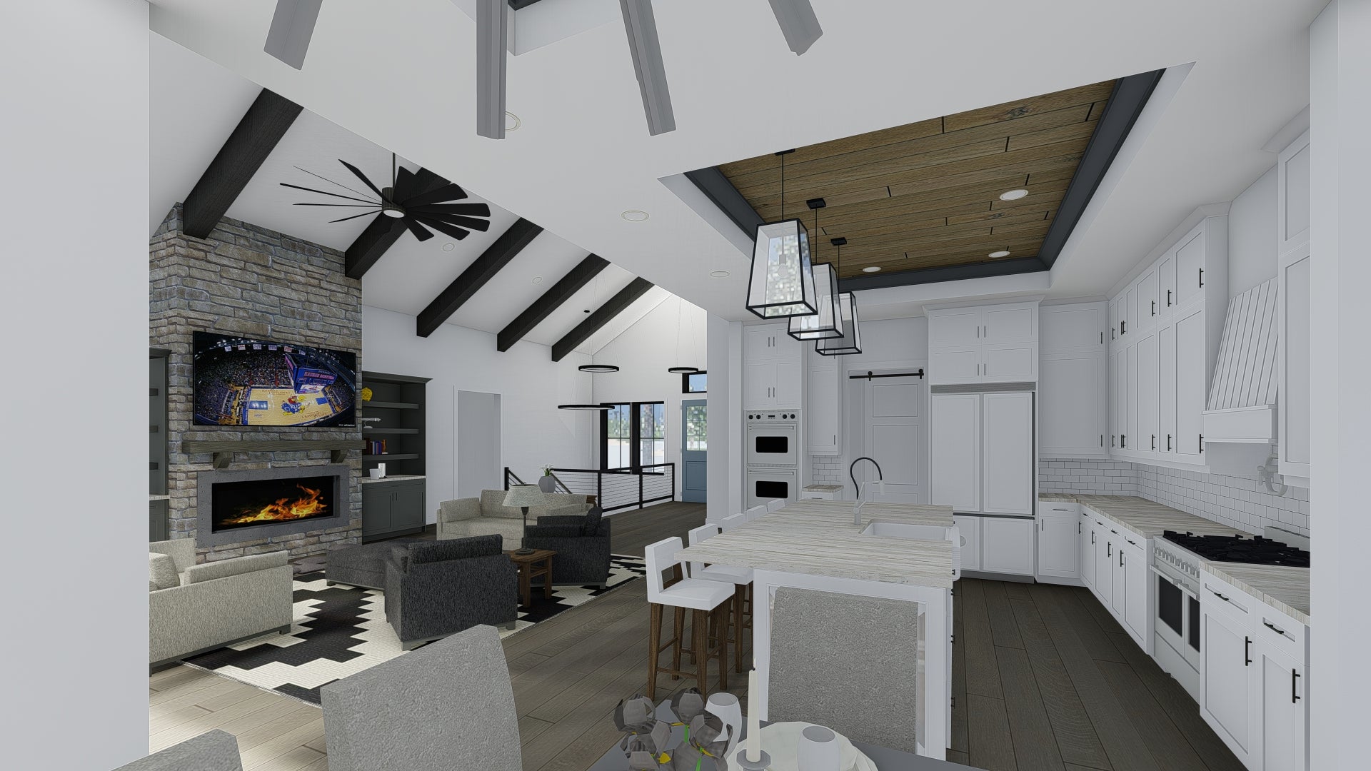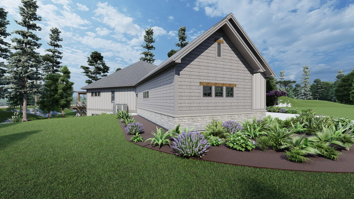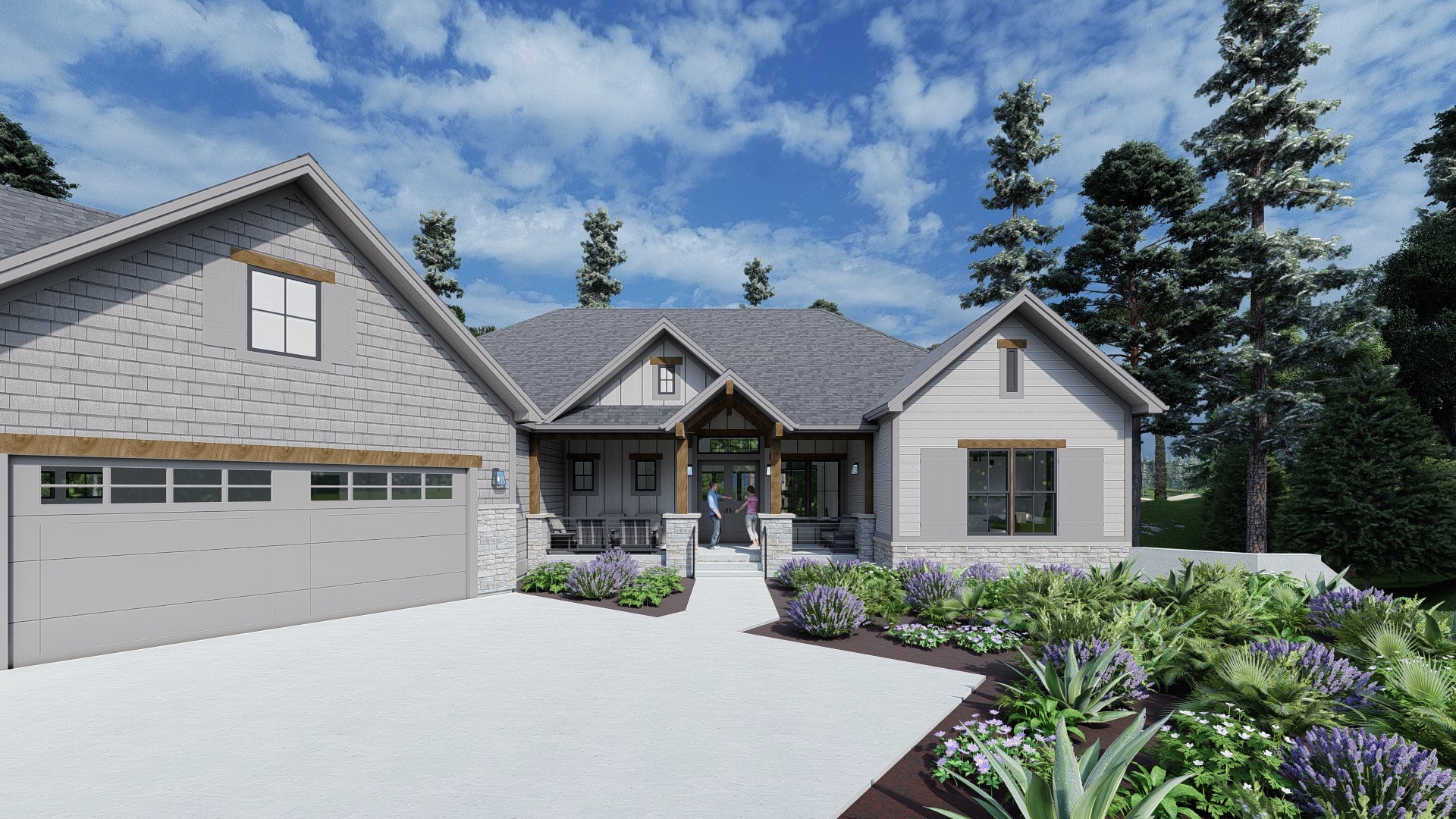 This 2,895 sq ft Transitional-style home perfectly balances classic comfort with contemporary sophistication. Designed for main-level living, it features 2 spacious bedrooms, 2.5 baths, and a flowing open floor plan anchored by a vaulted great room and a stunning fireplace. The gourmet kitchen—complete with a large island and walk-in pantry—opens to both a formal dining room and a covered back porch with its own outdoor fireplace, perfect for hosting or relaxing in any season. A luxurious master suite includes double vanities, a generous walk-in closet, and private access to the rear deck, while a dedicated home office and mudroom offer smart functionality.
