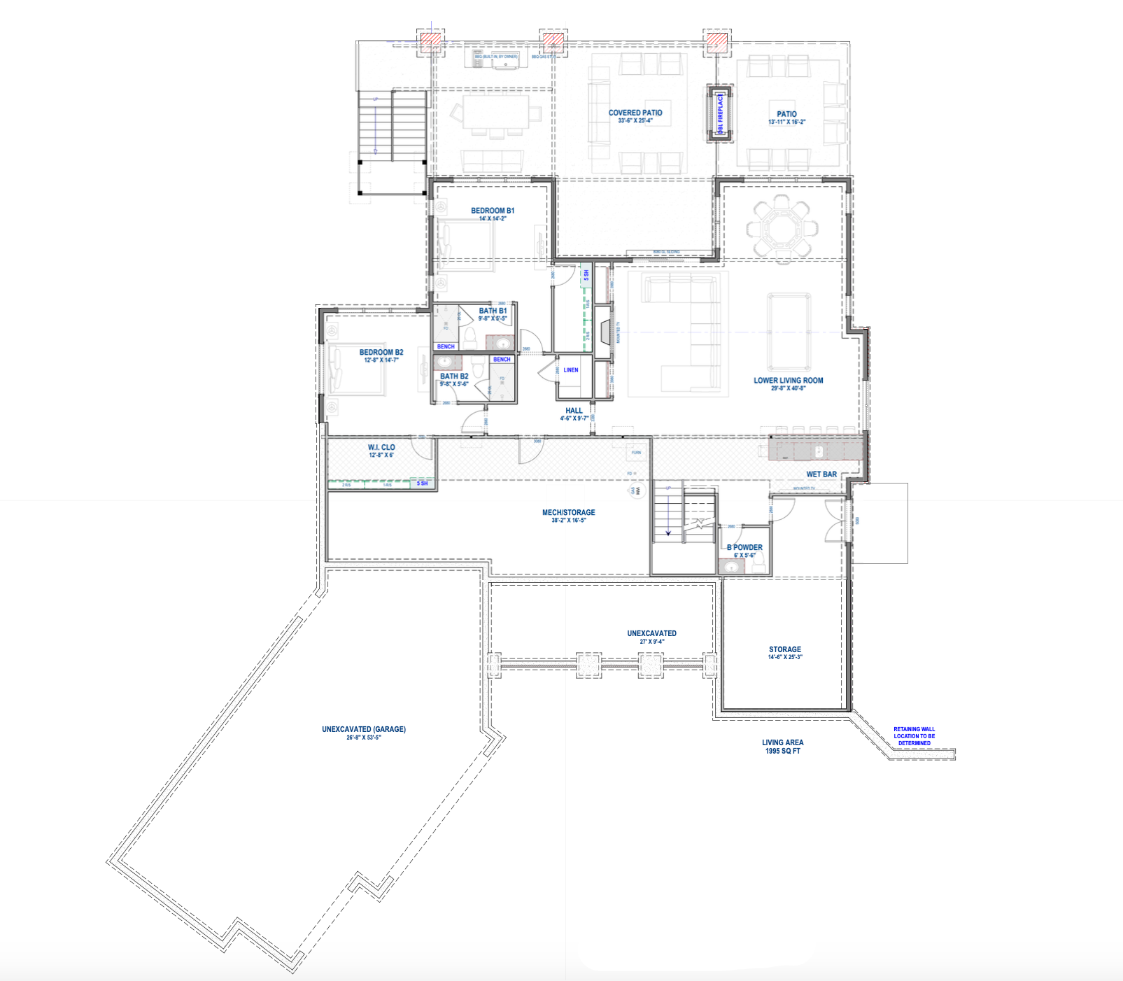 Walkout Basement - This foundation is typically suited for rear-sloping lots and provides storage or living areas. Walkout basements have doors that provide access to the outside.