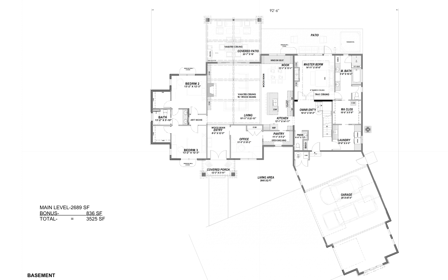 The luxurious main-floor master suite is a private retreat, featuring a spa-like bathroom with double vanity sinks and a generous walk-in closet with direct access to the laundry room. A dedicated home office offers a quiet workspace, while two additional bedrooms share a well-appointed bathroom. The expansive bonus room provides endless possibilities, whether for a media room, gym, or extra guest space. With a massive 2,046 sq. ft. basement and a 3-car front-load garage, this home delivers both style and practicality, making it a dream for modern living.
