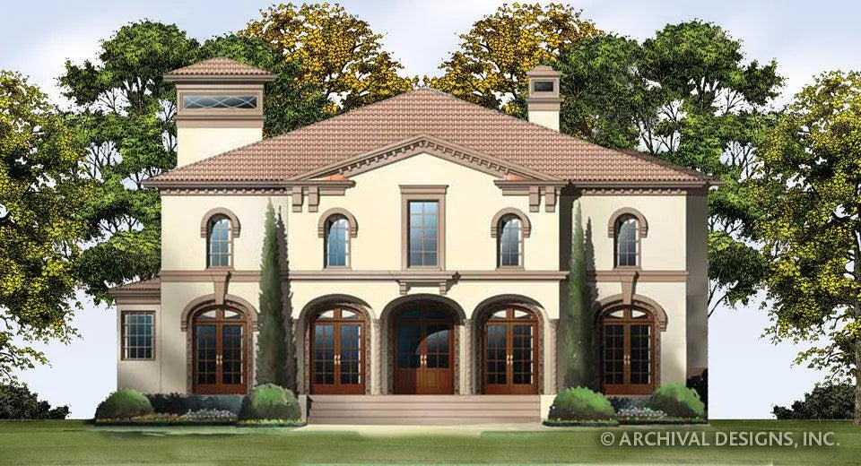 By drawing in the symmetry of the villas found in Tuscany, the Villa Royale provides understated grandeur in only 3,000 square feet. Despite its compact size, no amenity is overlooked or deleted; such as the stylish grand room, which is slightly oval, adjoining a spacious dining hall. The family room, located to the rear of the home, features a bowed wall of windows and a warming fireplace. A guest room or office accesses the rear deck as well as a full bath. Upstairs, the master bedroom is full of amenities, including two walk-in closets, a private porch and a lavish bath. Three family bedrooms, each with direct access to a bath, finish out this floor.