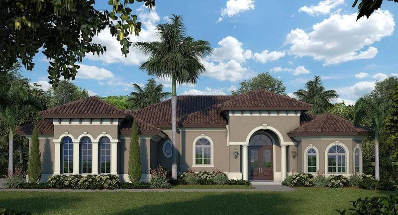 Measuring 68'10'' in width and 59'11'' in depth, this residence stands at a height of 22'6'', creating a welcoming presence. The first floor boasts impressive 12' ceilings, enhancing the airy feel throughout. A side-loading garage accommodates three vehicles, ensuring ample storage and convenience. Constructed on a solid slab foundation with CMU wall framing and elegant stucco exterior, this home seamlessly blends style and functionality, making it an ideal choice for those seeking a modern living space.