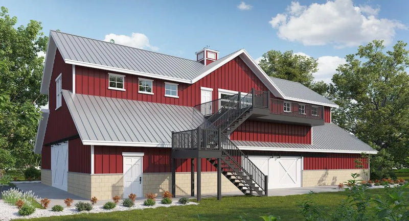 Come to know this exceptional barn garage plan that combines functionality with ample storage and workspace. With a generous first floor area of 3,750 sq ft, this structure is designed to accommodate your vehicles, equipment, and hobbies. The side-loading garage features three spacious bays, ensuring plenty of room for cars, tools, and recreational vehicles.