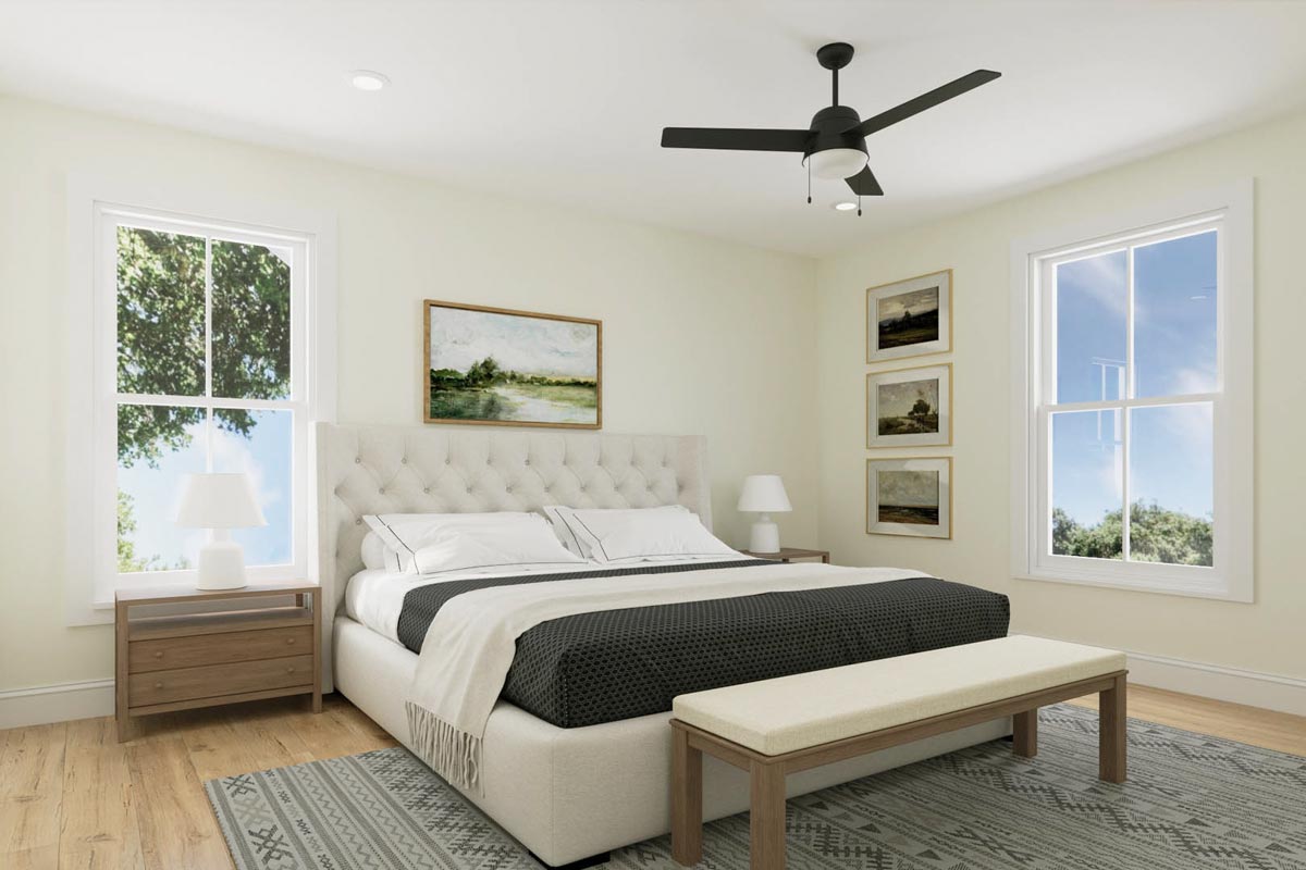 This 2,010 sq ft home is a perfect balance of smart design and everyday function. The first floor's 1,015 sq ft layout includes a welcoming covered front porch, a cozy den, flex room, and a bright open-concept kitchen with a center island and adjacent breakfast area. A first-floor laundry and mudroom make daily living effortless, while the Jack and Jill bathroom provides convenience for the clustered bedrooms.