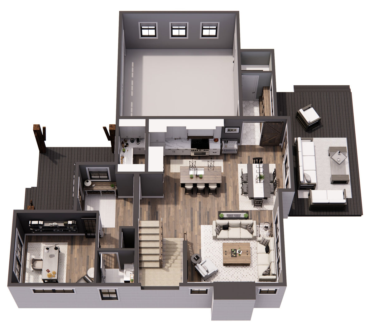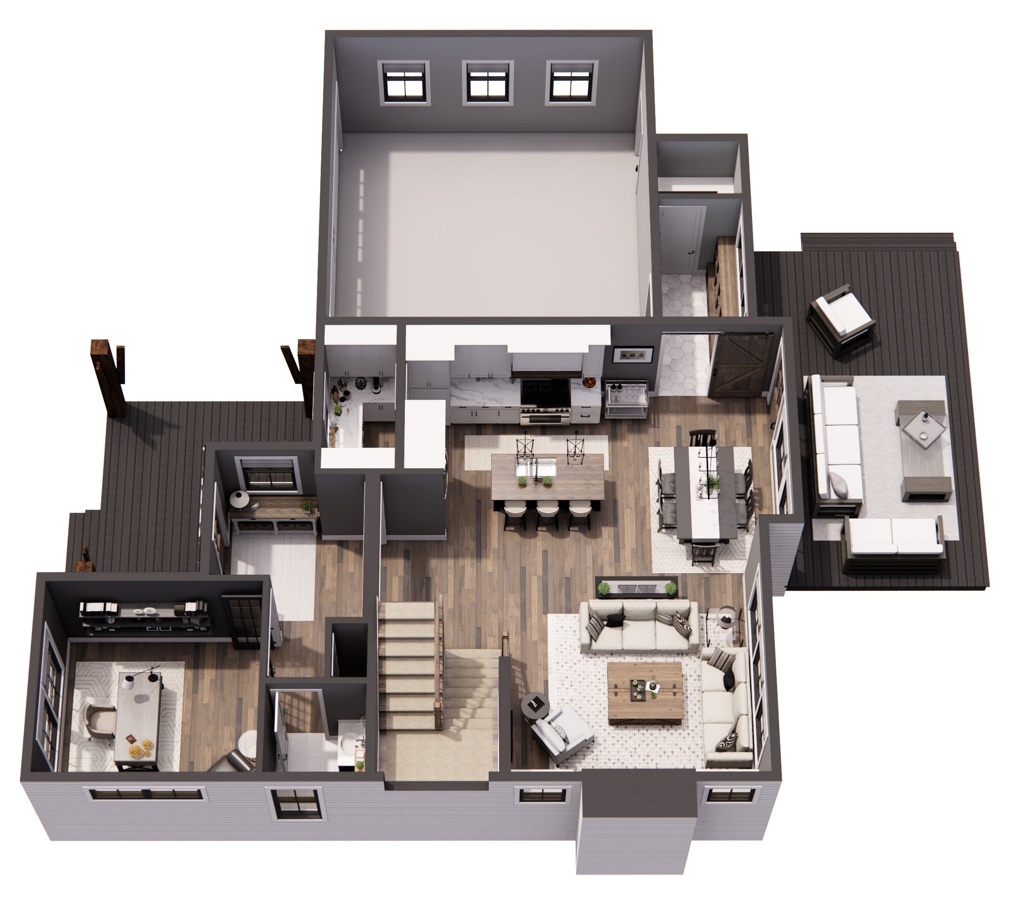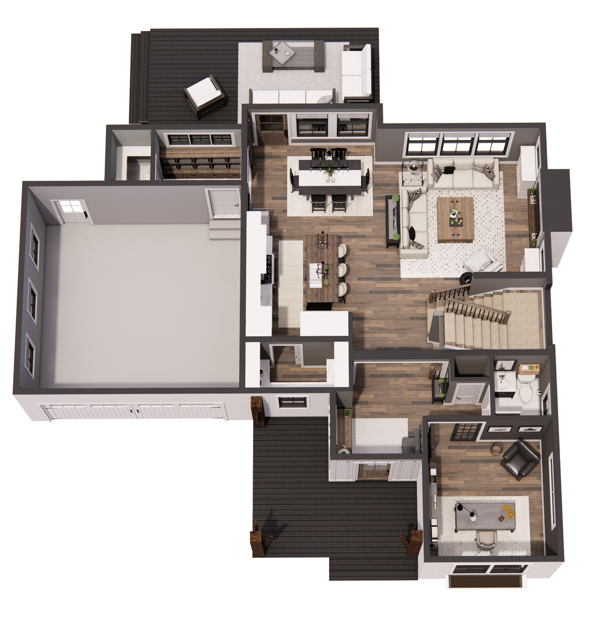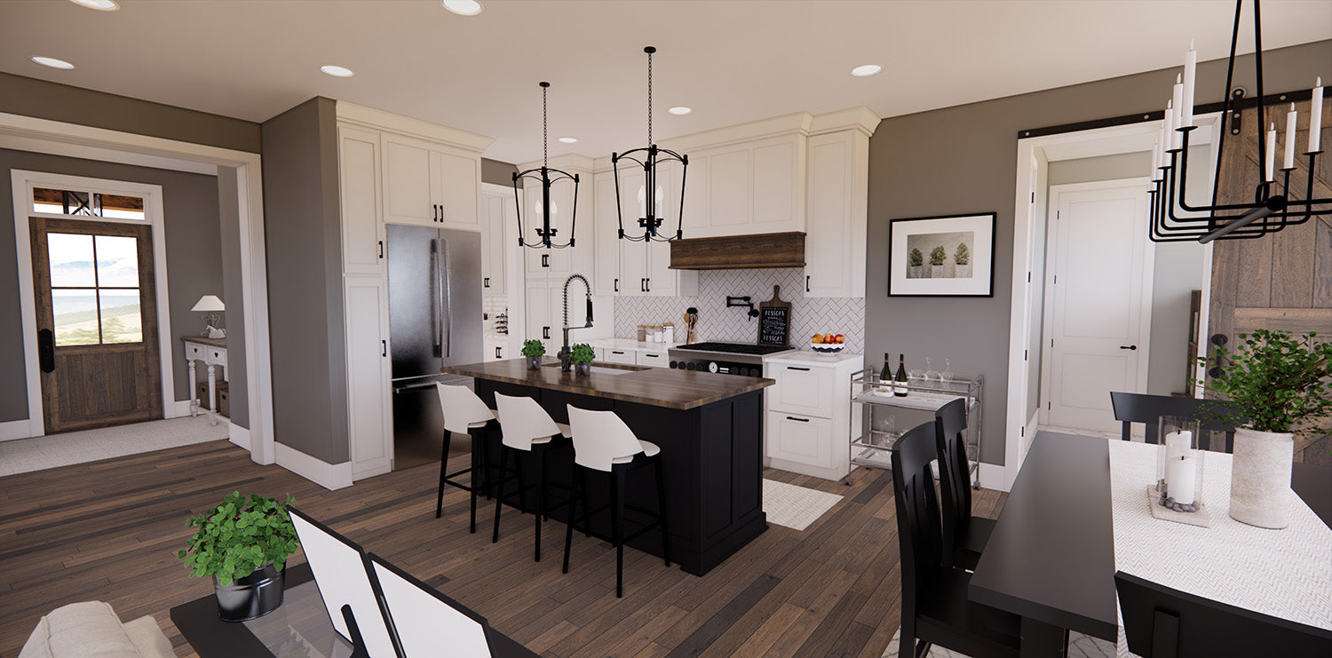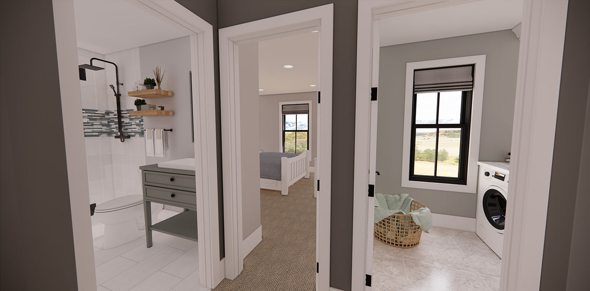 A complete set of working drawings delivered in digital PDF format. This option comes with a license to build ONE home and includes a copyright release for printing unlimited sets of plans and making modifications.