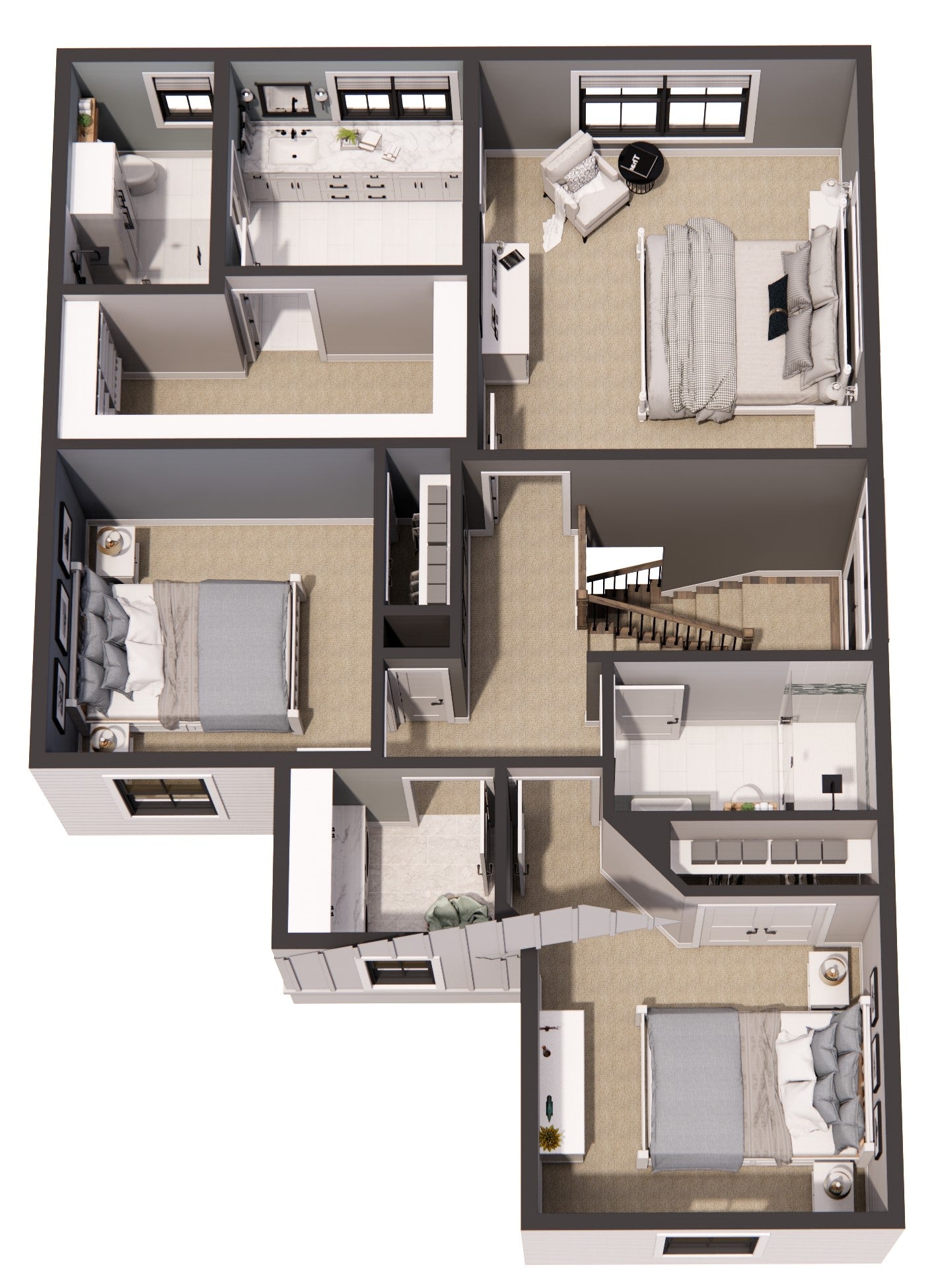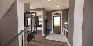 Upstairs, the private master suite offers a luxurious retreat with double vanities, a large step-in shower, and a walk-in closet. Two additional bedrooms with ample closet space, a laundry room, and a spacious home office complete the layout. Thoughtful touches like a mudroom with built-ins, garage access, and extra storage throughout ensure this farmhouse is as functional as it is charming.