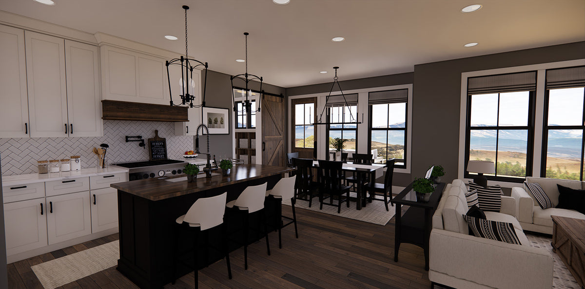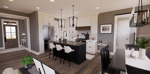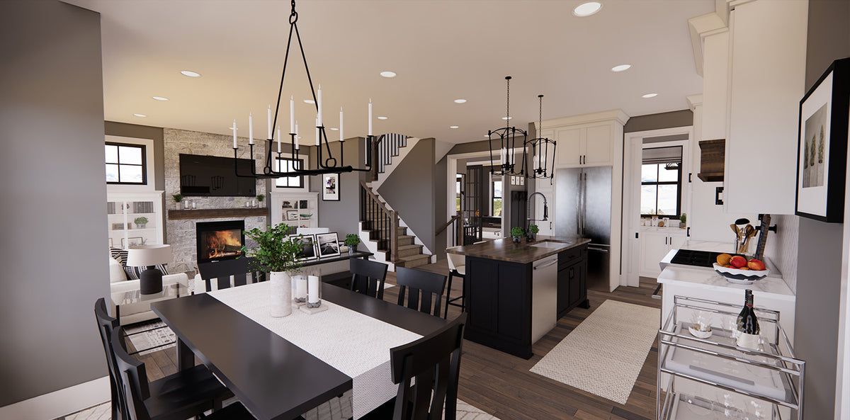 This delightful 1,973 sq ft farmhouse blends timeless charm with modern functionality. The inviting wood-pillared front porch welcomes you into an open-concept living area featuring a cozy fireplace with custom built-ins, a bright great room, and a stylish kitchen. The kitchen’s large center island with seating for three, abundant cabinetry, and a generous walk-in pantry make it both beautiful and practical. Nearby, the dining space opens to the backyard, offering seamless indoor-outdoor living.