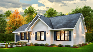 With three well-appointed bedrooms and two full baths, this home is ideal for families or downsizers who don’t want to compromise on comfort. The private primary suite features its own vaulted ceiling, adding a touch of luxury and retreat-like ambiance. Additional highlights include a walk-in closet, first-floor laundry, and a one-car front-load garage for everyday convenience. Whether you’re building your forever home or a relaxing getaway, this plan delivers timeless farmhouse charm with modern functionality.