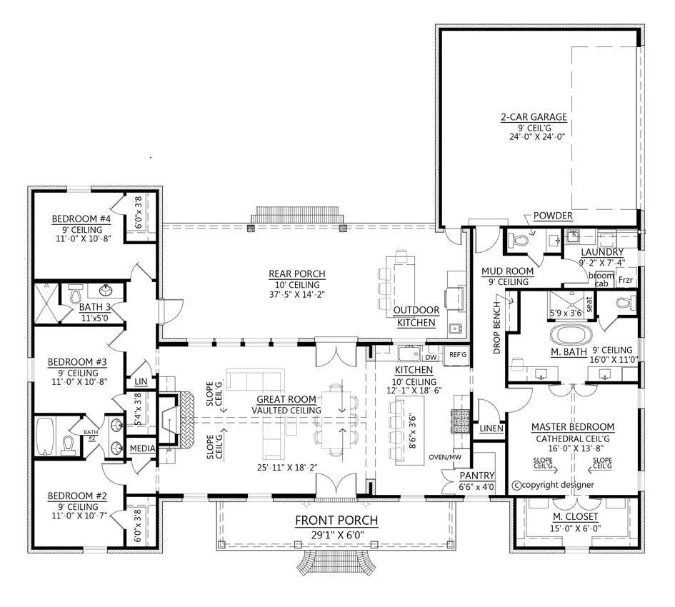 Depending on your city, county, and state building requirements, house plans may need to be reviewed by a local licensed architect or engineer for structural details and code standards before construction begins. This is particularly true in coastal areas and those facing seismic events, extreme winds, and heavy snow. If you are building in any of these areas, a licensed structural engineer will likely be needed to provide the necessary calculations and additional drawings. We authorize the use of our plans conditioned on your obligation and agreement to strictly comply with all local building codes, ordinances, regulations, and requirements, including permits and inspections at the time of and during construction. We recommend checking with your local building department for the most current requirements. The purchaser(s) and/or builder are responsible for additional expenses incurred through meeting municipality requirements or other requirements for construction.
