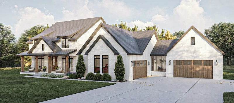 Additionally, this plan includes the convenience of first-floor laundry facilities, with easy access from the owner's suite for added ease. The generous garage accommodates up to four vehicles, providing ample storage for all your needs. With 703 sq ft of outdoor porch space, you can relax and entertain in style. The second floor offers extra living space, perfect for guests or a play area for children. With meticulous attention to detail and a versatile layout, this house plan is ideal for modern living, combining comfort, style, and functionality. Don't miss the opportunity to make this beautiful home yours!