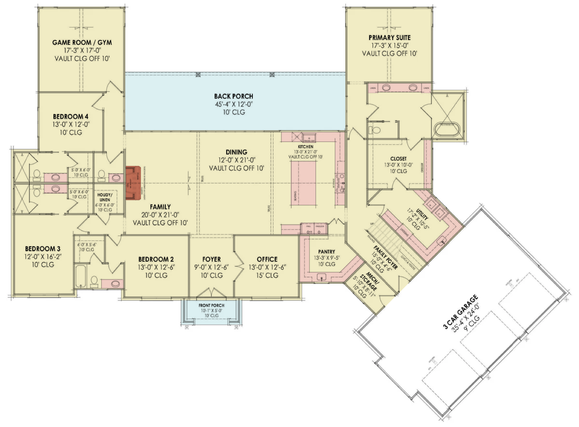 Introducing your ideal house plan, a spacious 3,817 square foot masterpiece designed for comfort and elegance. The generous first floor boasts an open layout that effortlessly connects the living, dining, and kitchen areas, making it perfect for entertaining guests or enjoying family time. With four well-sized bedrooms and four full bathrooms, plus a convenient half bath, there’s plenty of space for everyone.
